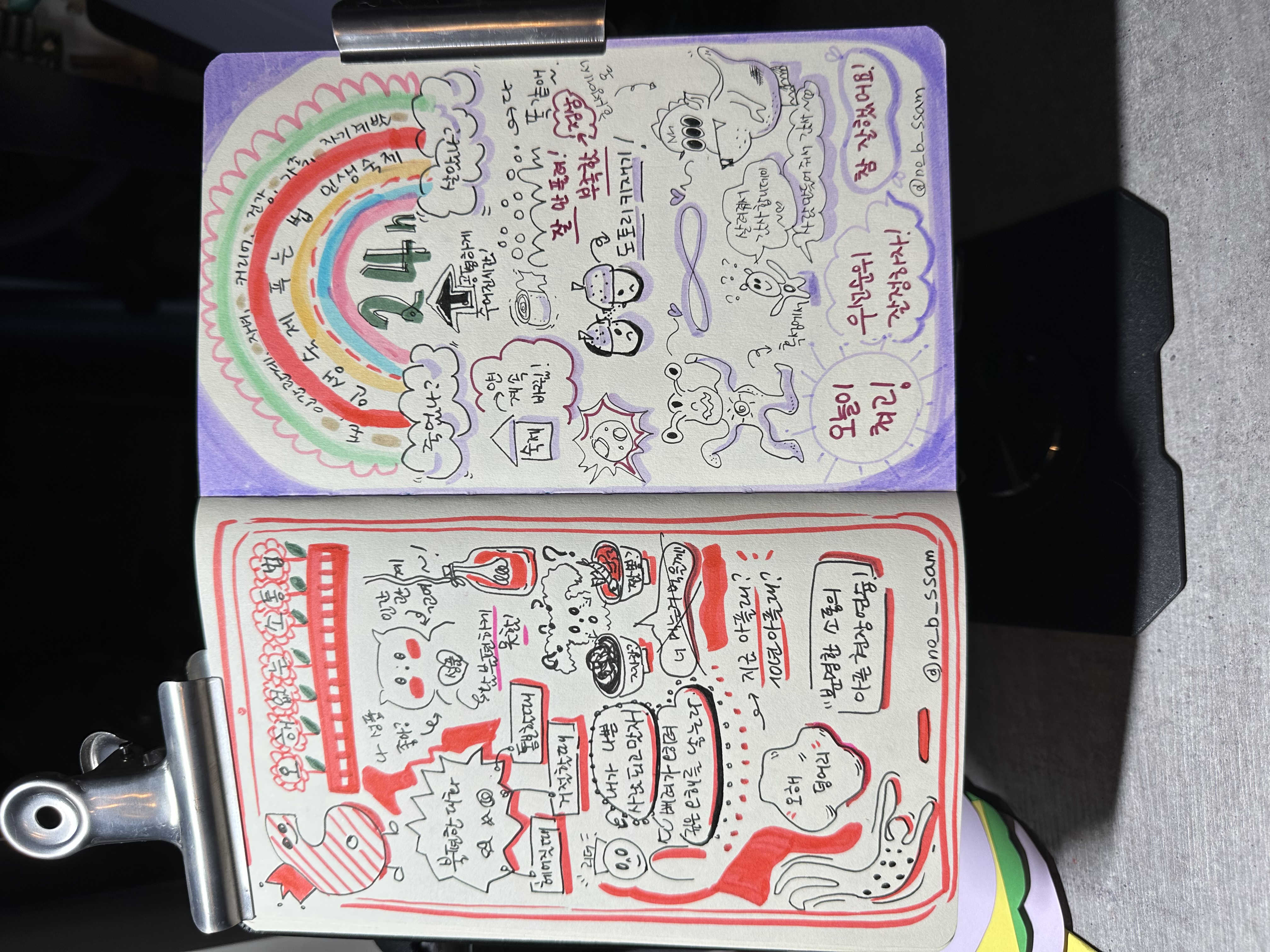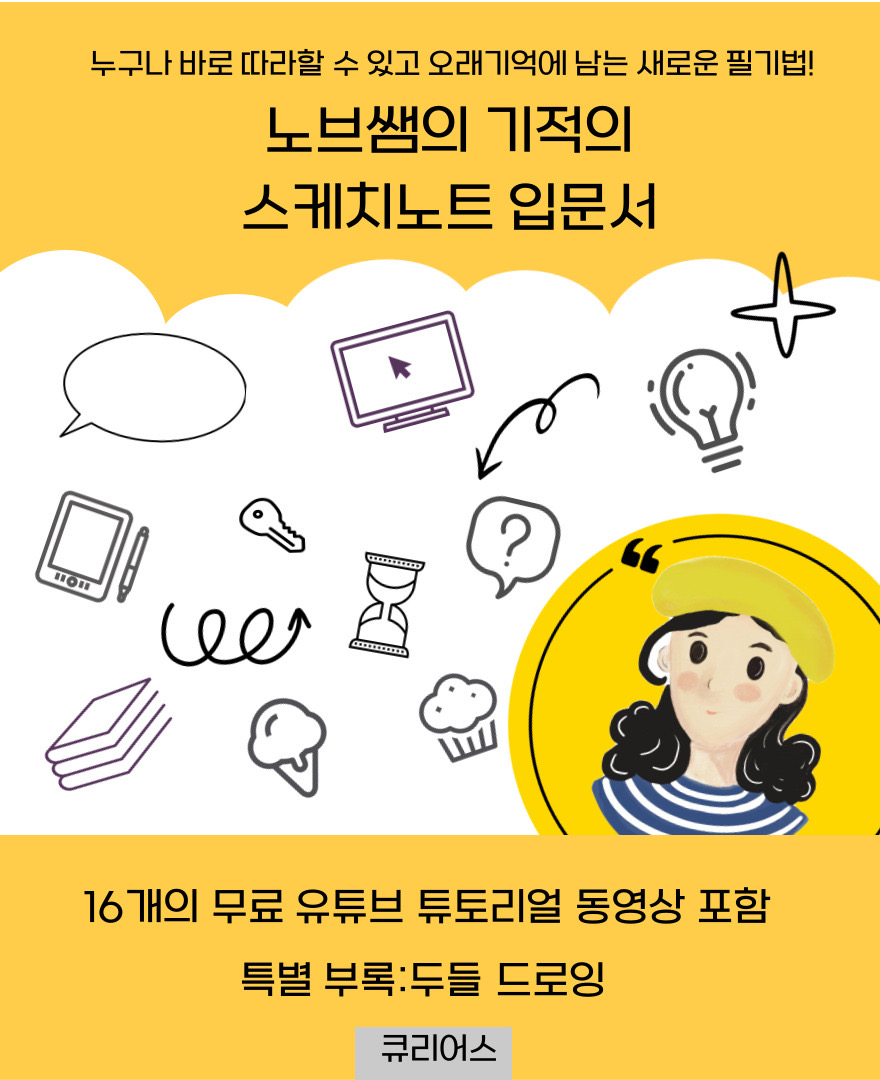 전자책 '노브쌤의 기적의 스케치 노트 입문서' 저자 노브쌤입니다. 전자책 출간 기념으로 무료 어울림 진행합니다! 스케치 노트란 노트법의 하나로써, 좌뇌, 우뇌를 동시에 사용하게 해서 100% 집중할 수 있게 하는 노트 법입니다. 뇌 과학자들은 스케치 노트와 같은 생각의 비주얼화가 80% 더 기억에 많이 남는다고 주장합니다. 저도 실제로 그렇게 경험했구요. 독일에서는 이미 2012년 즈음 부터 대중화 되었고, 미국에서는 최초의 스케치 노트를 2008년에 시작이 되었다고 합니다. 한국에는 퍼실리테이션으로 큰 종이에 그리는 것으로 알려져있는데, 스케치 노트는 개인의 작은 포맷으로 본인을 위해 작성하는 것을 말합니다. 제 스케치 노트 강의 법은 스스로가 먼저 생각하고 체험하게 하는데 그 특성이 있다고 평가 받고 있습니다. 어울림 과정: 1월 14일 한국 시간 일요일 저녁 8시에 오리엔테이션을 줌으로 갖고, 그 이후 7일간 각자의 시간에 맞추어서 동영상을 보시고 과제를 하면서 스케치 노트를 배우시는 과정입니다. 새로 개설된 여러분들 만의 오픈카톡방에서 동영상 링크를 챌린지 기간 동안 올려드립니다. 작성하신 과제물을 오픈 카톡방에 올려주시고 저와 소통하면서 질문에 답해드립니다. 오리엔테이션은 녹화본이 제공 됩니다. 주의! 오픈카톡방은 입장하시면, 1월 12일부터 소통이 가능하십니다. 준비물: 프린트 용지와 사용하시는 펜 (그외 자세한 것은 오카방에서 다시 알려드립니다.)
