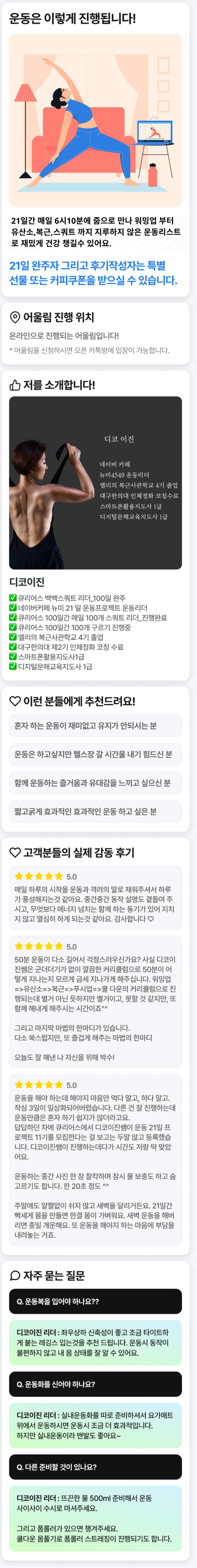 → 요일별로 구성된 선택형 운동으로 지루하지 않게 진행됩니다.