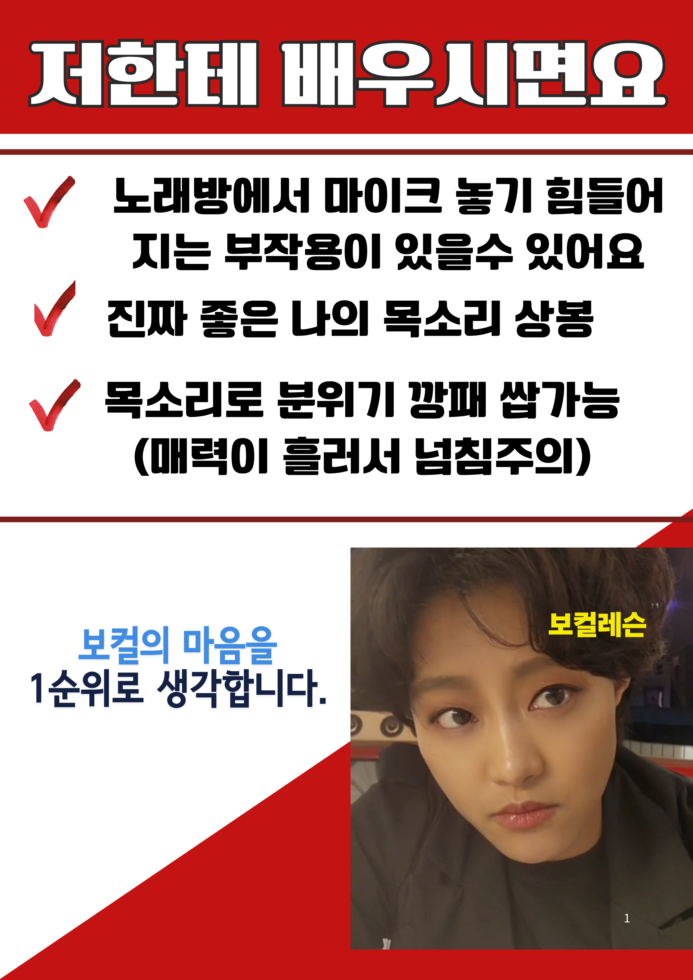 최고의 성형 !! 보컬레슨을 통해 급격히 매력넘치는 분으로 만들어 드리겠습니다.