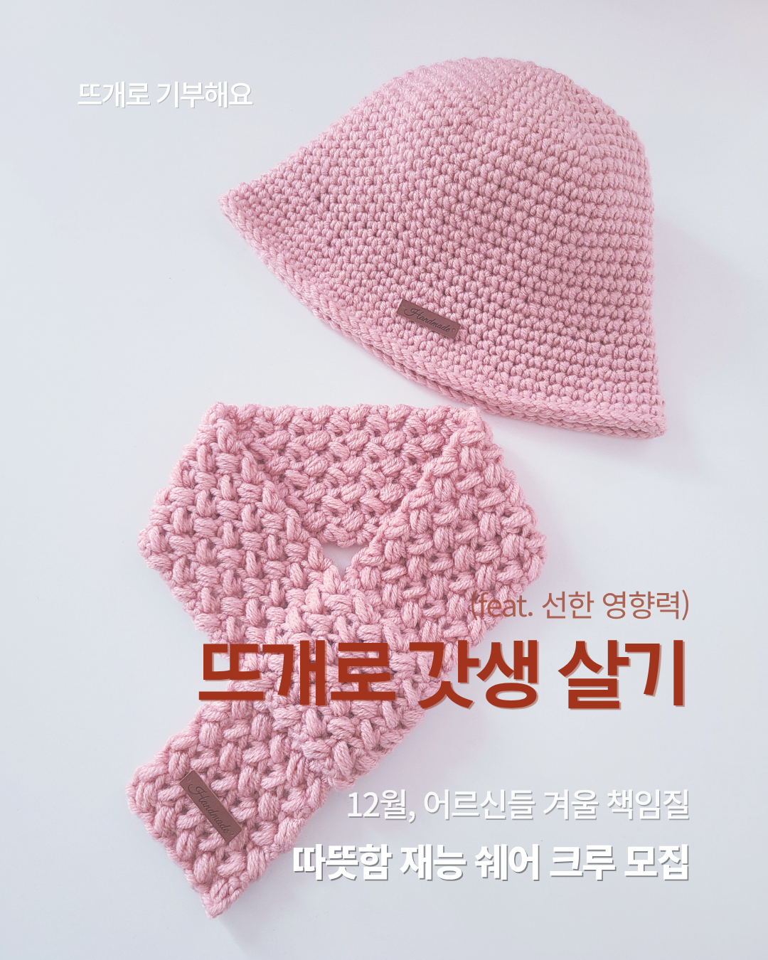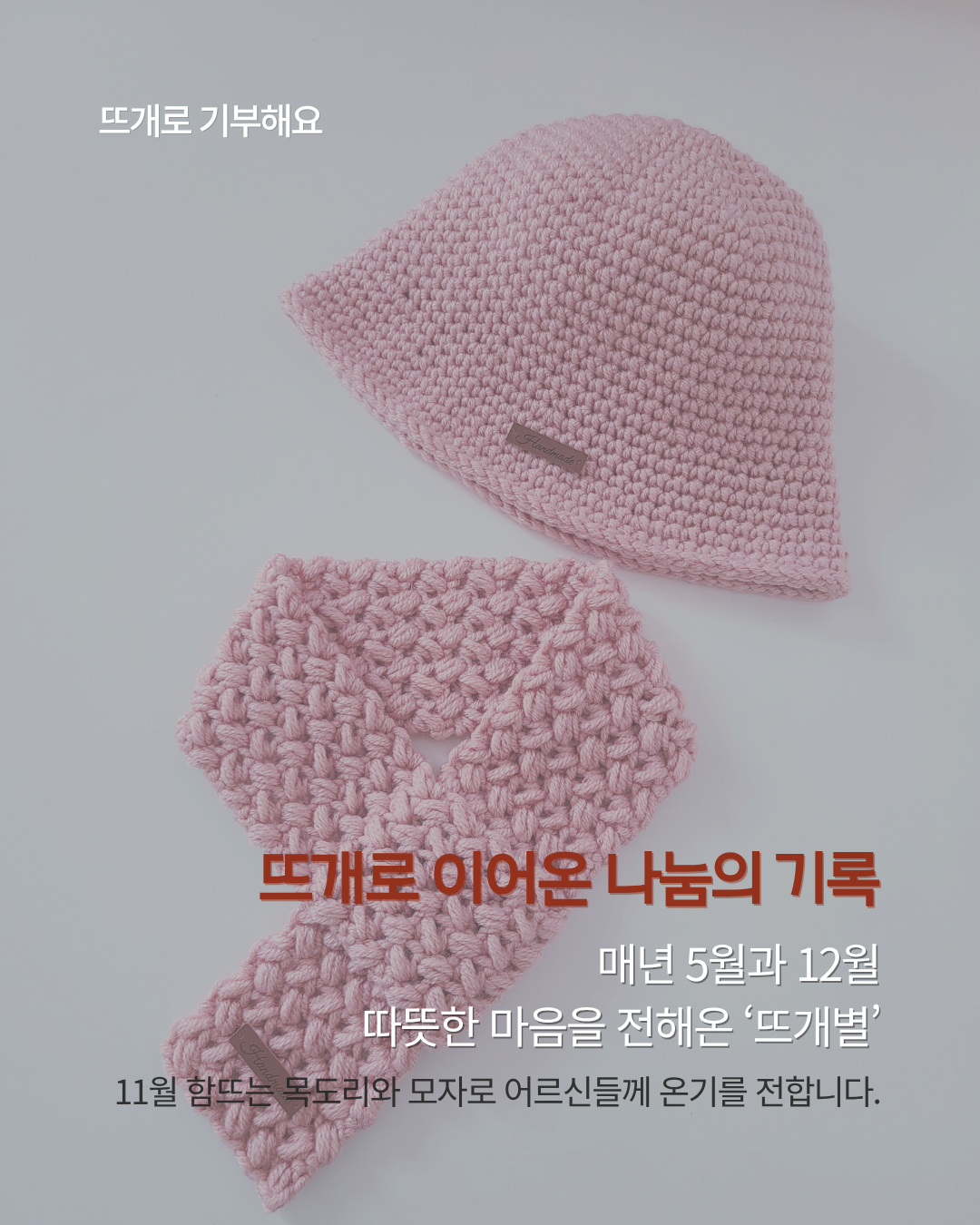 11월, 따뜻한 마음과 손길을 모아 노인복지관 어르신들께 손뜨개 목도리와 모자를 선물할 예정이에요.