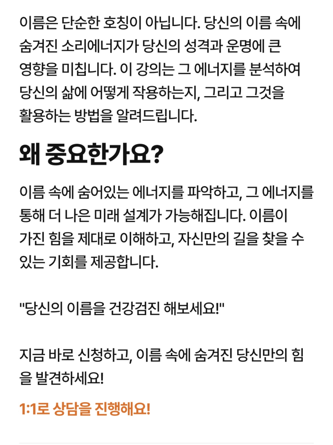 이름에너지가 궁금하신 분은 "옵션 1"을 선택해서 ZOOM 이나 통화로 상담을 진행하시면 되겠습니다.