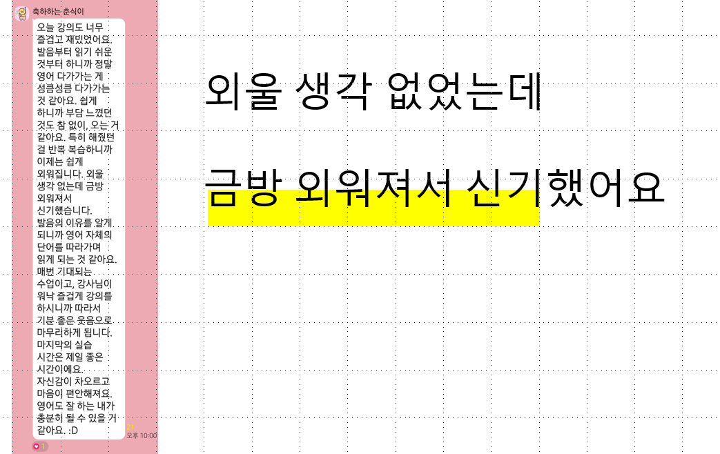 영어 앞에서 움츠러들던 마음이 “나도 된다!”로 바뀝니다.