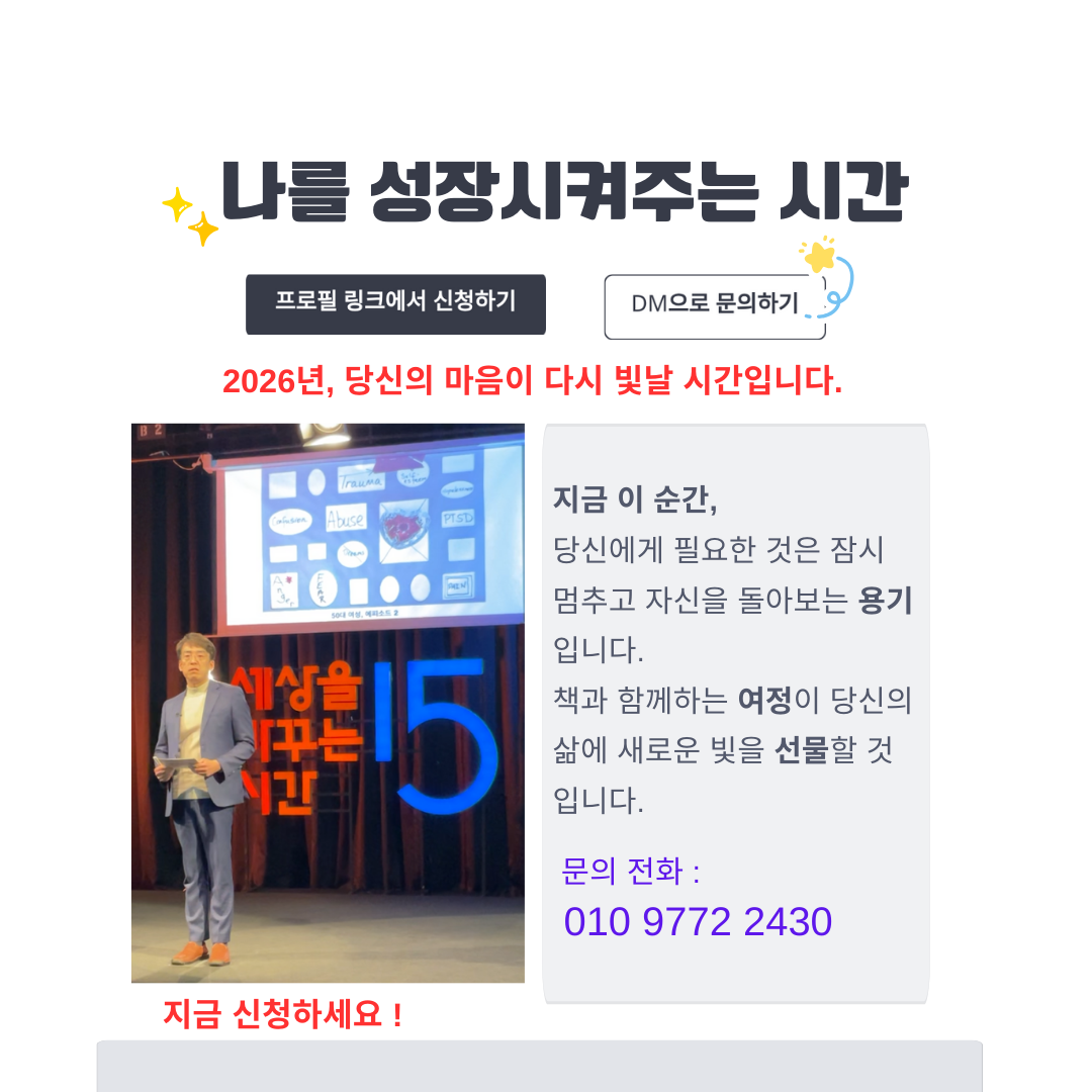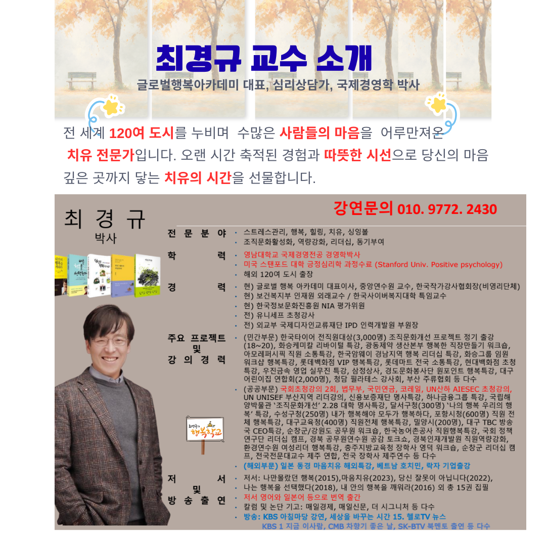 안녕하세요! 행복학교 최경규입니다. 귀한 당신과의 인연 함께 시작해보려 합니다.