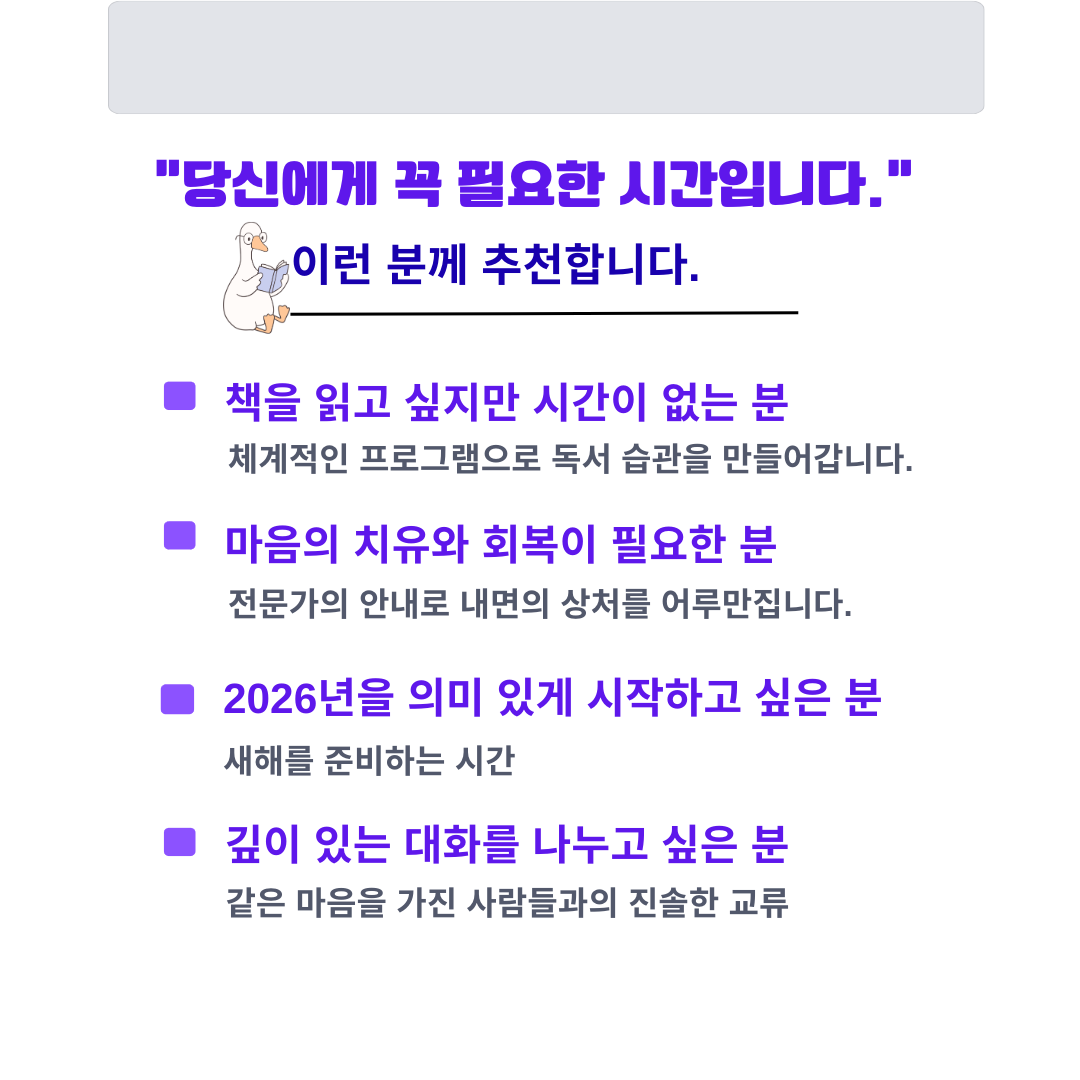 - 참여자가 환불 불가 시점 이후에 개인 사유로 불참하는 경우, 환불이 불가능합니다.