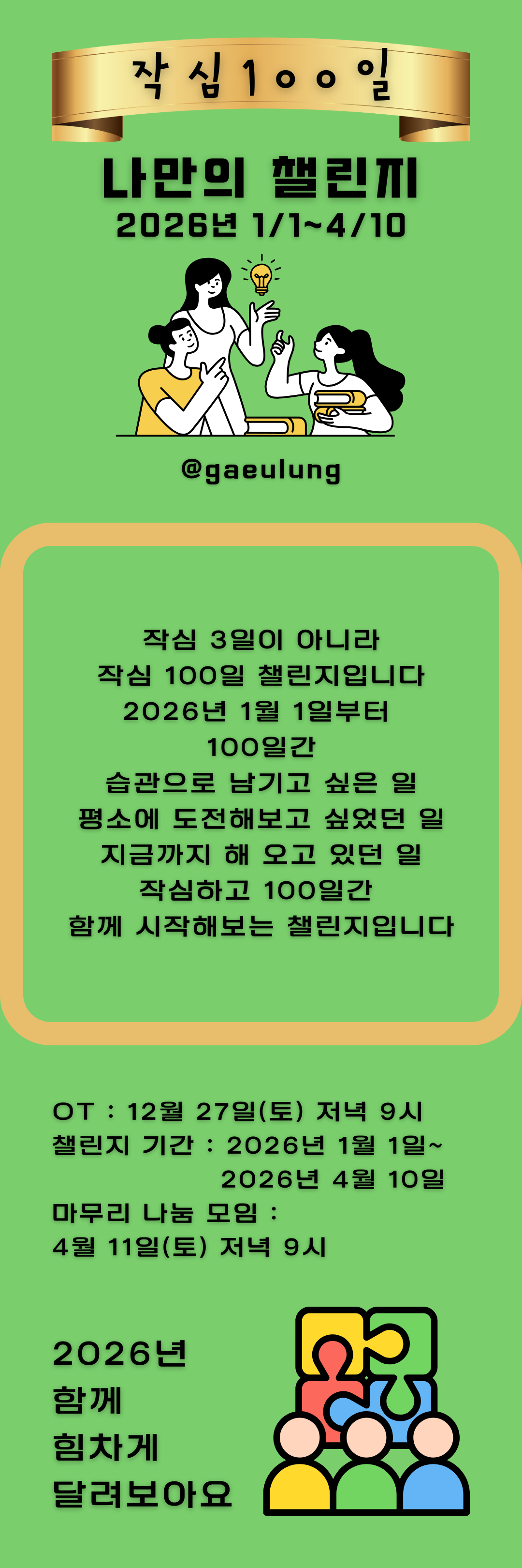 새해를 맞이하면서 나만의 챌린지에 도전해보는 기회입니다.