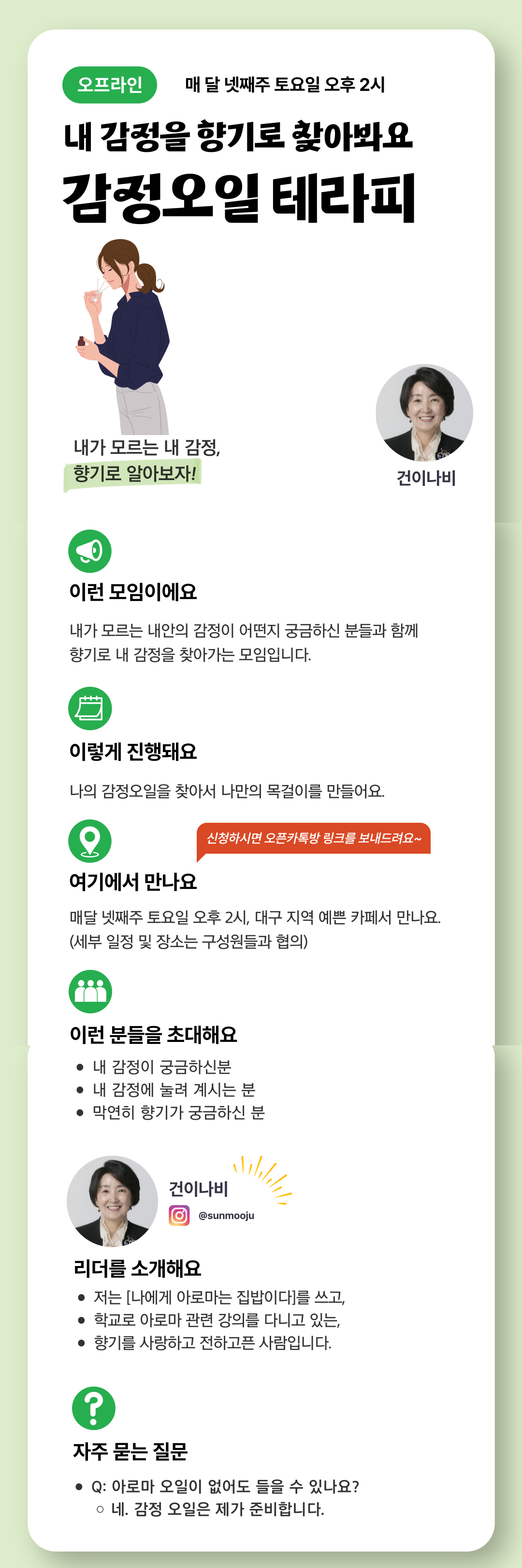 내가 모르는 내 안의 감정이 어떤지 궁금하신 분들과 함께 향기로 내 감정을 찾아갑니다 - 가격 2만원에는 재료비 및 커피값이 포함됩니다.