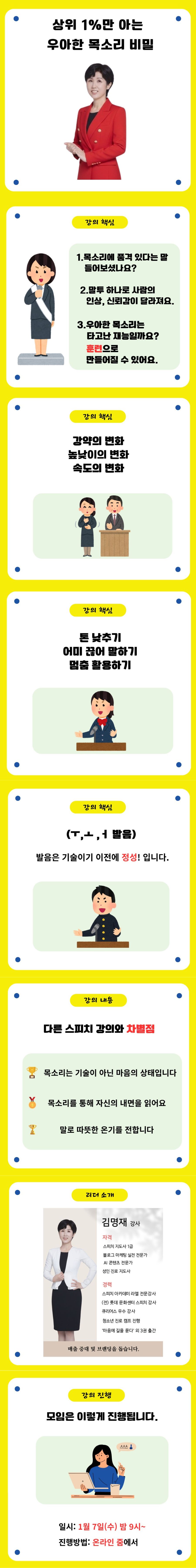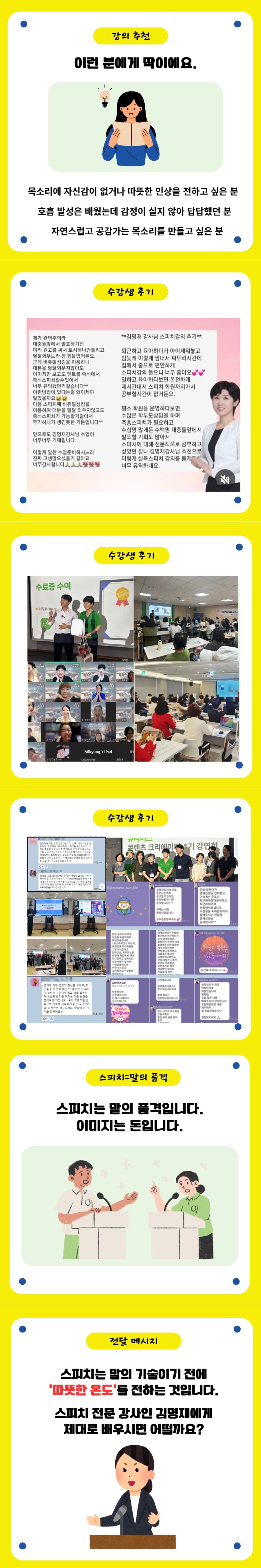 1. 기본 정보 * 생년 월일: 1974년 4월생 * 전문 분야: 블로그 코칭, 스피치 교육, 마인드 코칭 2. 핵심 성과 * 네이버 상위 1% 블로거 달성 * 교보 문고 베스트셀러 작가 & 4권 출간 공저 작가 * 큐리어스 콘텐츠 크리에이터 4기 우수 강사 선정 * 스피치 아카데미 라엘 전문 강사 3. 보유 자격증 * 블로그 마케팅 실전 전문가 * AI 콘텐츠 전문가 * 스피치 1급 지도사 * 디지털 튜터 1급 & 2급 자격증 * 성인 진로 지도사 4. 주요 활동 * 블로그 코칭 -> 콘텐츠 기획 & 작성법 교육, 수익화, 기록을 통한 브랜딩 * 교육 플랫폼 강사 활동 -> 큐리어스 우수 강사, 스피치 교육 * 작가 활동 -> 4권 출간(공저), 교보 문고 E북 에세이 베스트셀러 * 마돈나 오픈 채팅방 운영자 -> '마지막에 돈 내는 나'로 살고 싶은 사람들의 모임 5. 자기 소개 삶의 방향을 제시하는 김명재입니다. "인생은 속도가 아닌 방향이다" 라는 철학으로 블로그 코칭 전문가,기록 디자이너, 4권의 책을 출간한 작가로 많은 분들의 성장과 변화를 돕고 있습니다. * 블로그의 정석 사업 홍보 및 브랜딩이 되기 위해 가장 중요한 것은 키워드입니다. 돈이 되는 키워드에 대한 올바른 관점으로 상위 노출 제목 잡기, 글쓰기를 알려드립니다. 저품질이 되지 않기 위해 가장 필요한 것은 블로그에 대한 기본 지식을 탄탄히 쌓고, 스킬을 익히는 것이며, 좋은 양질의 글을 꾸준히 발행하는 것이죠. 그 노하우를 4주 과정을 통해 아낌없이 나누며, 함께 성장하고 수익화까지 돕겠습니다. * 검증된 콘텐츠 창작 능력. 4권의 다양한 장르 도서를 공저로 출간했습니다. 그 중 [마음에 길을 묻다]는 교보 문고 E북 에세이 베스트셀러에 오르는 성과를 거두었어요. 이러한 실전 경험을 바탕으로 단순한 이론이 아닌 실제 결과를 만드는 콘텐츠 교육을 제공합니다. * 협업과 네트워킹의 전문가. 모든 저서가 공저 작품인 만큼, 다양한 작가들과의 성공적인 협업 경험을 보유하고 있습니다. 이는 개인 창작자들의 네트워킹과 협업 기회 창출에도 도움을 드릴 수 있는 차별화된 강점입니다. * 블로그 운영과 개인 브랜딩에 모든 노하우를 수강생들과 함께 공유하고 성장하겠습니다. 감사합니다.