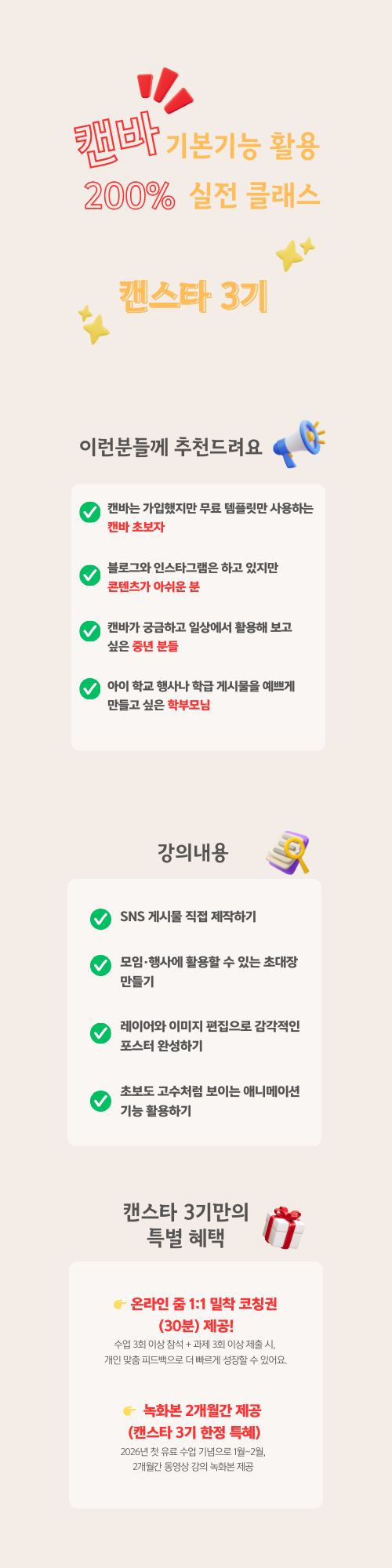 그래서 이번 캔스타 3기는 캔바 초보자도 누구나 따라올 수 있는 쉬운 내용으로