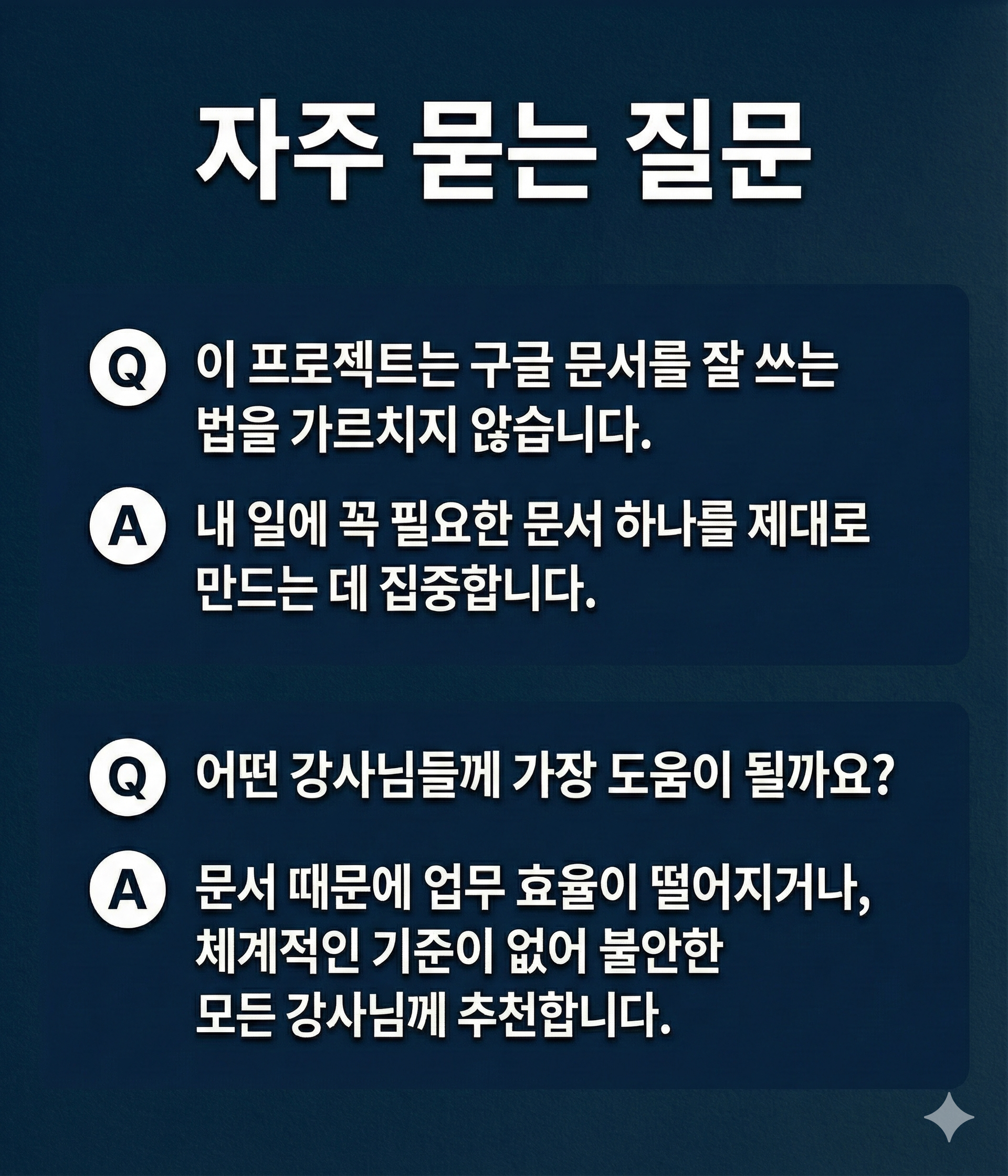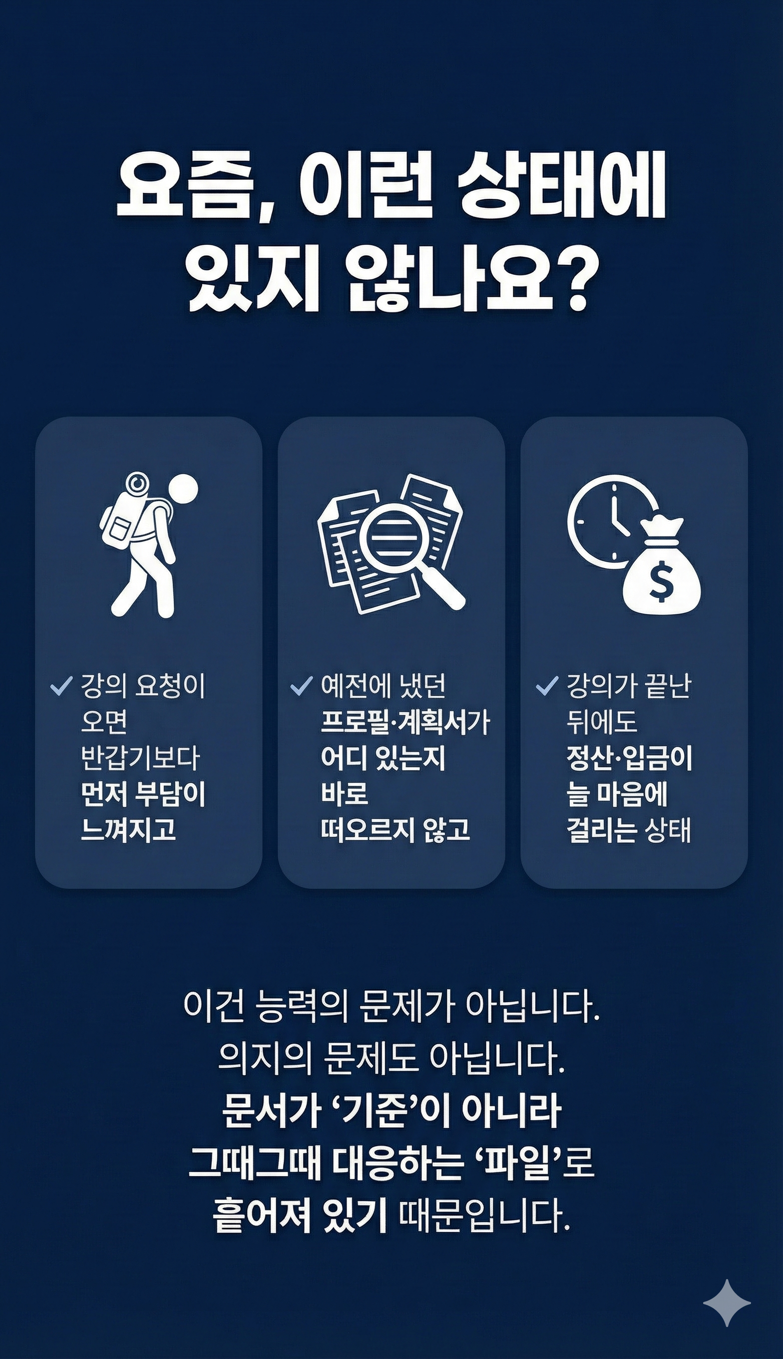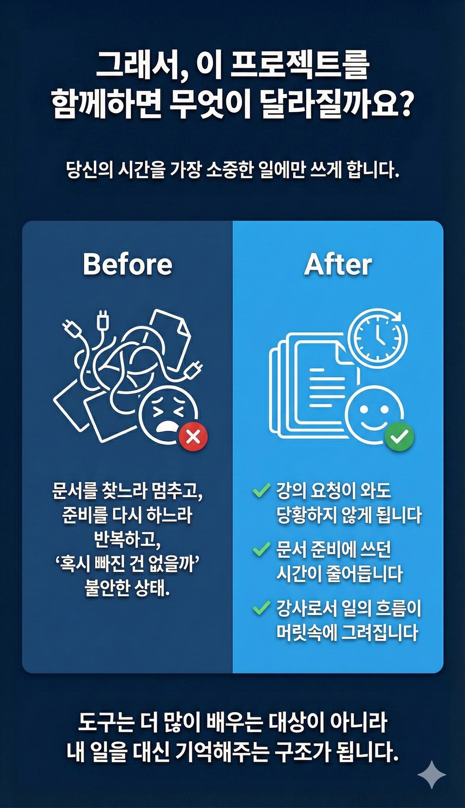 이 프로젝트를 찾는 분들은 대부분 이미 충분히 성실하게 일해온 강사들입니다.