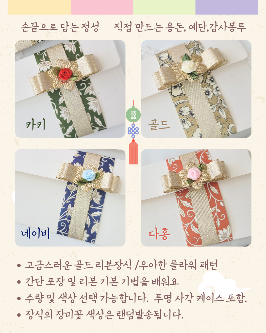 용돈 봉투 및 배씨 리본핀 모두 진행합니다.
