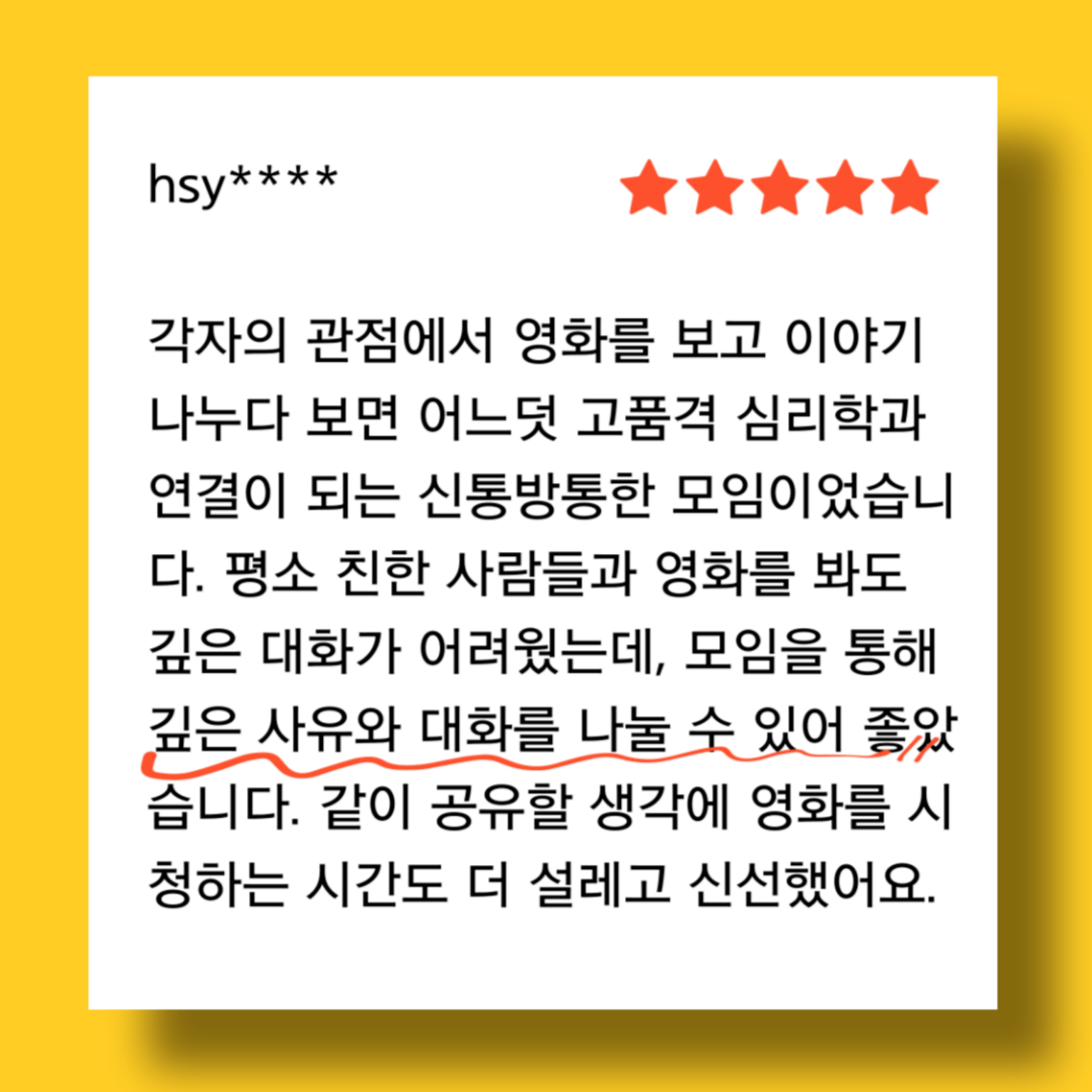 (📢 모여서 영화를 감상하는 게 아닌, 각자 영화를 감상한 뒤에 참여하는 어울림입니다! 본작은 현재 쿠팡플레이, 왓챠, 웨이브 등, 각종 OTT에서 보실 수 있습니다 📢)