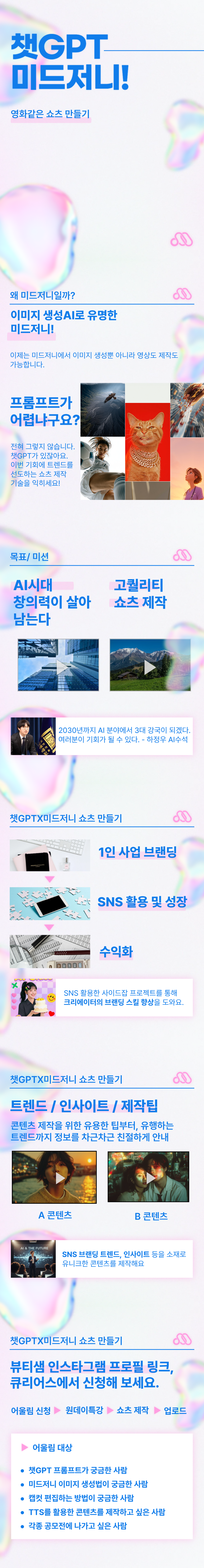 안녕하세요! 무엇이든 물어보세요 ℍ𝕀 👋 𝕄𝔸𝕐 𝕀 ℍ𝔼𝕃ℙ 𝕐𝕆𝕌 ? 📍리더추천코드: 5099 안녕하세요! AI와 실생활을 연결해주는 중장년 맞춤형 챗GPT강사 뷰티샘입니다:) 4060 이직러, 은퇴자들은 제 2의 창업을 위해 사업구상과 시장조사 등 필요한 챗GPT를 활용해야 하는 시대입니다. 딱딱하게 접근하면 알고 있어도 잘 실천하지 않죠. 유료급 무료특강과 원데이 클래스로 쉽고 재밌는 활용법을 알려드립니다. 두려움 없이 AI 따라잡기에 이어 공문서, 엑셀, 해외 쇼츠까지 AI로 일하며 돈벌기 같이 실행해보실까요? 솔로프리너 함께 성장해요 👋