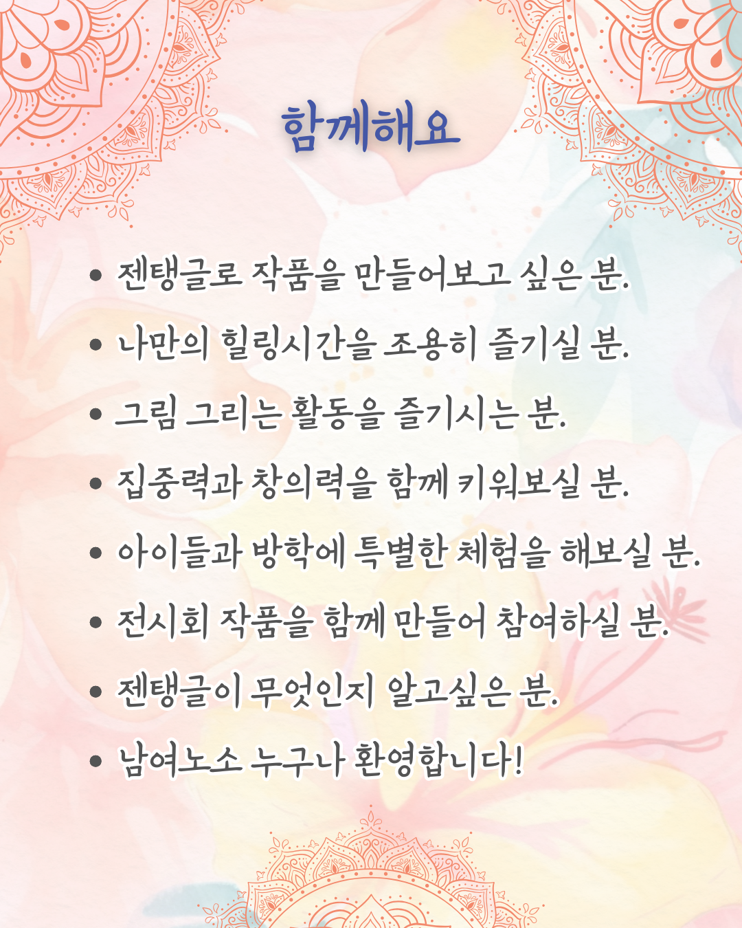 ★차후 젠탱글 커뮤니티 전시 개최시 작품으로 출품하시면 됩니다.