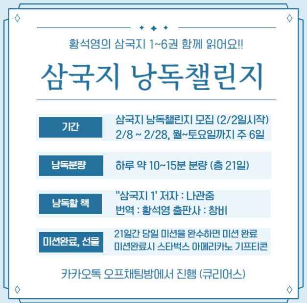 2월 삼국지 낭독챌린지 9기 모집 (2/2일 시작)