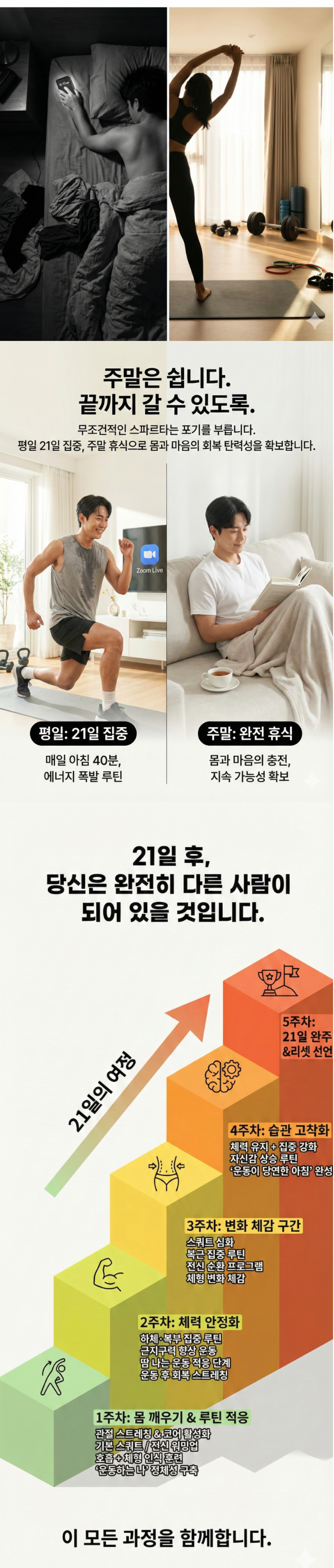 몸을 깨우고 → 땀 내고 → 정리까지