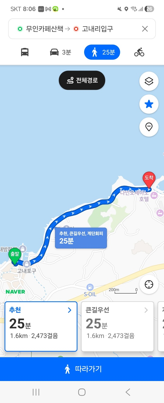 ■ 걷기코스 : 무인 카페 산책 (고내포구앞) ~~ 고내리 입구 (다인오세아니아 호텔 앞) 왕복 1시간 가량