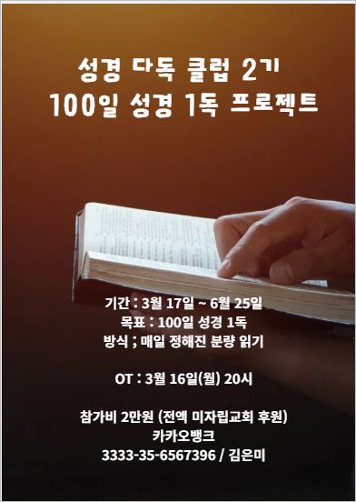 100일 뒤, 말씀으로 채워진 단단해진 나를 만나게 될 것입니다.