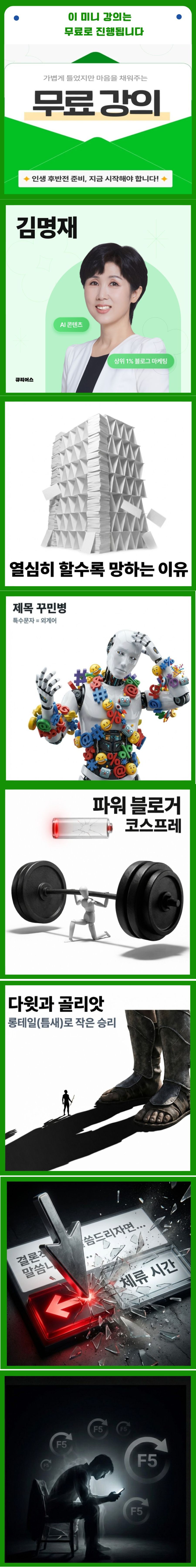 1. 기본 정보 * 생년 월일: 1974년 4월생 * 전문 분야: 블로그 코칭, 스피치 교육, 마인드 코칭 2. 핵심 성과 * 네이버 상위 1% 블로거 달성 * 교보 문고 베스트셀러 작가 & 4권 출간 공저 작가 * 큐리어스 콘텐츠 크리에이터 4기 우수 강사 선정 * 스피치 아카데미 라엘 전문 강사 3. 보유 자격증 * 블로그 마케팅 실전 전문가 * AI 콘텐츠 전문가 * 스피치 1급 지도사 * 디지털 튜터 1급 & 2급 자격증 * 성인 진로 지도사 4. 주요 활동 * 블로그 코칭 -> 콘텐츠 기획 & 작성법 교육, 수익화, 기록을 통한 브랜딩 * 교육 플랫폼 강사 활동 -> 큐리어스 우수 강사, 스피치 교육 * 작가 활동 -> 4권 출간(공저), 교보 문고 E북 에세이 베스트셀러 * 마돈나 오픈 채팅방 운영자 -> '마지막에 돈 내는 나'로 살고 싶은 사람들의 모임 5. 자기 소개 삶의 방향을 제시하는 김명재입니다. "인생은 속도가 아닌 방향이다" 라는 철학으로 블로그 코칭 전문가,기록 디자이너, 4권의 책을 출간한 작가로 많은 분들의 성장과 변화를 돕고 있습니다. * 블로그의 정석 사업 홍보 및 브랜딩이 되기 위해 가장 중요한 것은 키워드입니다. 돈이 되는 키워드에 대한 올바른 관점으로 상위 노출 제목 잡기, 글쓰기를 알려드립니다. 저품질이 되지 않기 위해 가장 필요한 것은 블로그에 대한 기본 지식을 탄탄히 쌓고, 스킬을 익히는 것이며, 좋은 양질의 글을 꾸준히 발행하는 것이죠. 그 노하우를 4주 과정을 통해 아낌없이 나누며, 함께 성장하고 수익화까지 돕겠습니다. * 검증된 콘텐츠 창작 능력. 4권의 다양한 장르 도서를 공저로 출간했습니다. 그 중 [마음에 길을 묻다]는 교보 문고 E북 에세이 베스트셀러에 오르는 성과를 거두었어요. 이러한 실전 경험을 바탕으로 단순한 이론이 아닌 실제 결과를 만드는 콘텐츠 교육을 제공합니다. * 협업과 네트워킹의 전문가. 모든 저서가 공저 작품인 만큼, 다양한 작가들과의 성공적인 협업 경험을 보유하고 있습니다. 이는 개인 창작자들의 네트워킹과 협업 기회 창출에도 도움을 드릴 수 있는 차별화된 강점입니다. * 블로그 운영과 개인 브랜딩에 모든 노하우를 수강생들과 함께 공유하고 성장하겠습니다. 감사합니다.