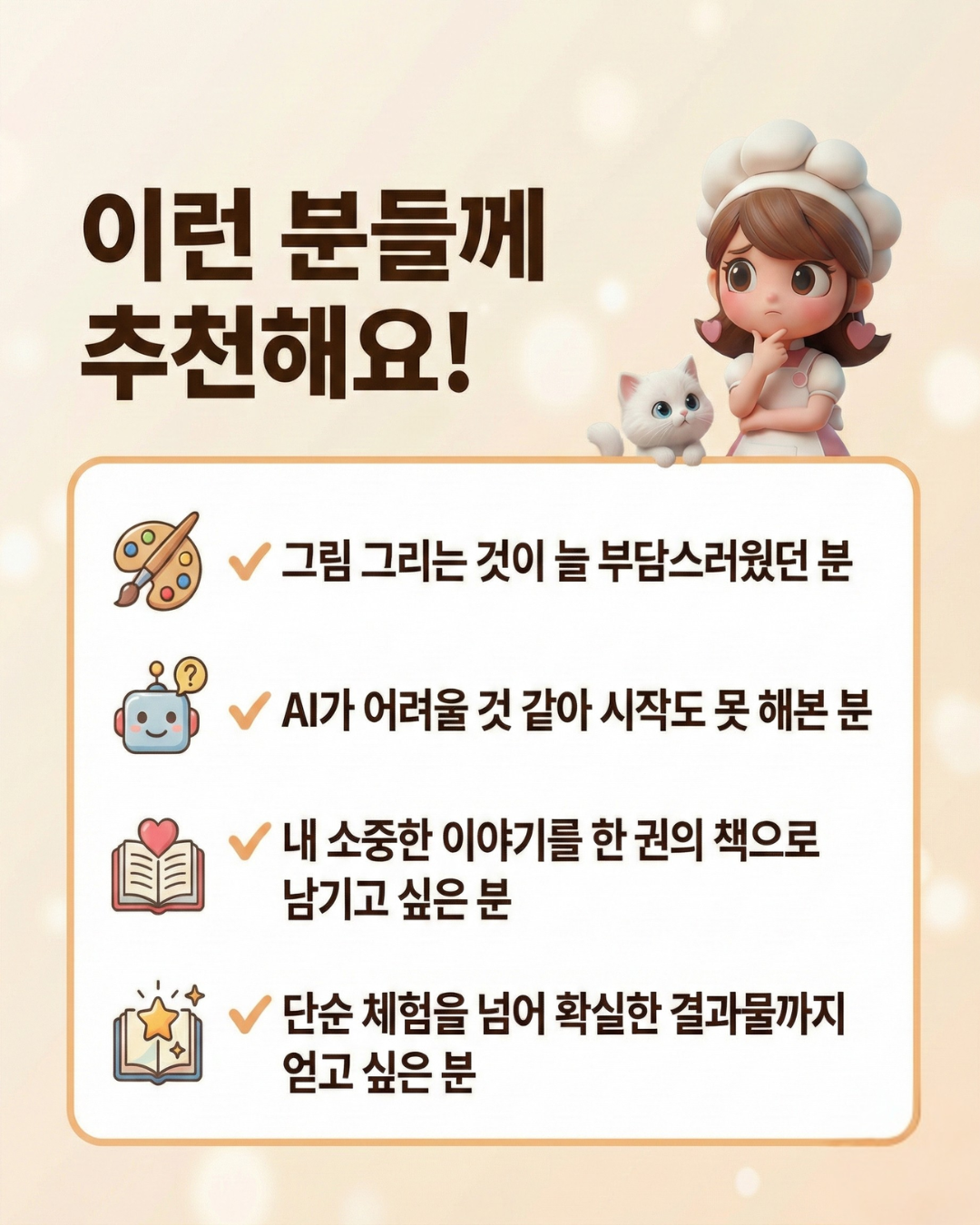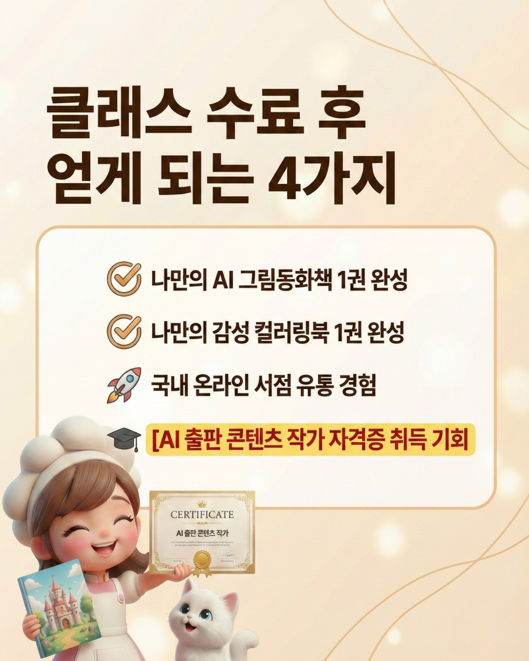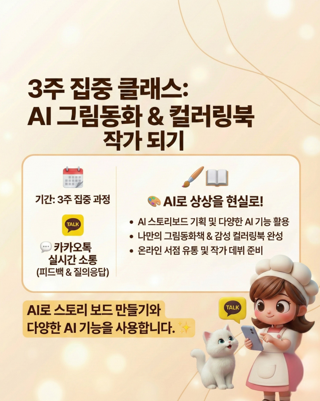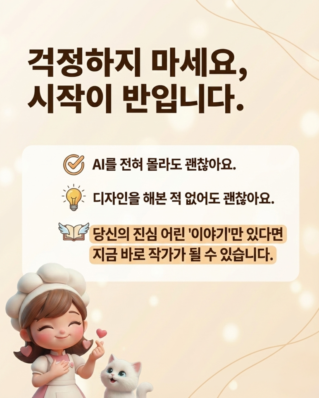AI 파티쉐 러키리카입니다! AI를 활용해 새로운 비즈니스를 창출하고, 창의적인 AI 콘텐츠 제작을 돕고 있습니다. "퇴근 후 AI광고감독이 되었다" AI광고공모전클래스를 운영하며 수준높은 AI영상제작 방법을 공유하고 있습니다. 현재 AI 캐릭터 제작과 홈페이지 프로젝트를 진행 중이며, 숏폼 영상 제작 수업을 통해 초보자도 쉽고 재미있게 영상을 만들 수 있도록 돕고 있습니다. 캔바 1급 자격증을 보유한 전문 강사로, AI 도구를 활용한 실용적이고 창의적인 콘텐츠 제작 방법을 알려드립니다.