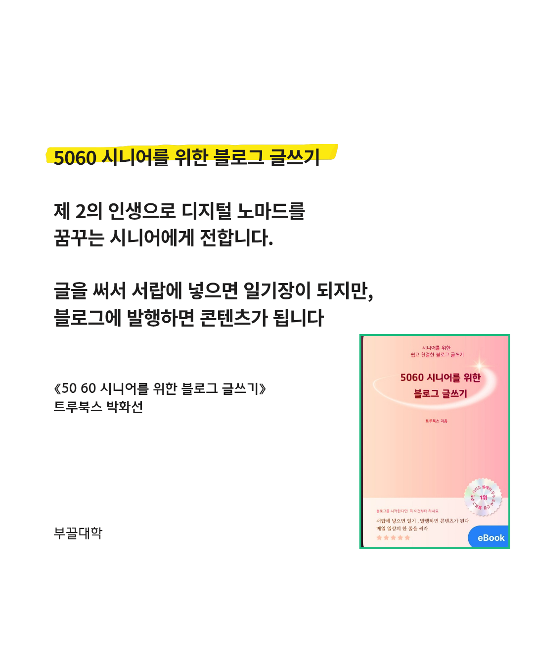 트루북스의 따끈따끈한 전자책 50 60 시니어를 위한 블로그 글쓰기 선물로 드려요.