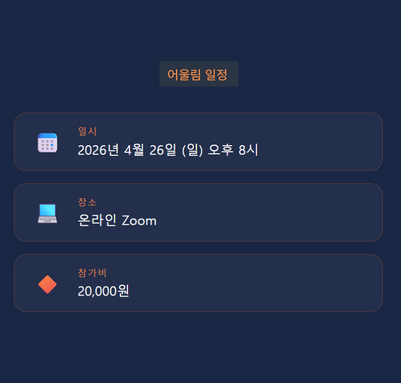 - 참여자가 환불 불가 시점 이후에 개인 사유로 불참하는 경우, 환불이 불가능합니다.