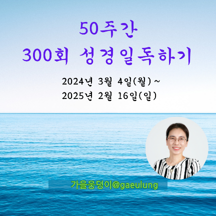 50주간 동안 300회로 나누어 성경을 일독하려고 합니다 진행 중간에 언제든지 들어오셔서 함께 하셔도 좋습니다