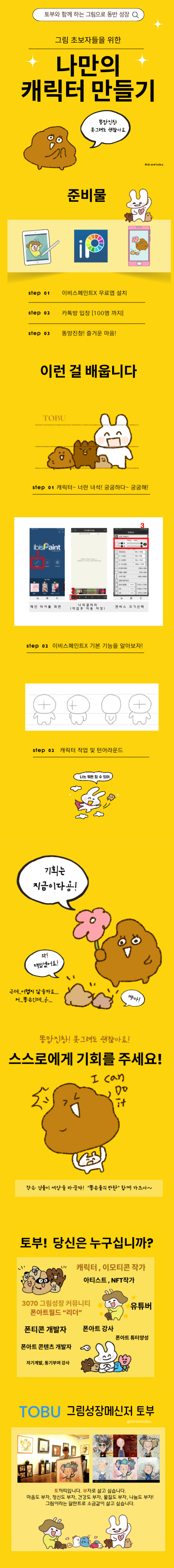 똥망진창!~그림 초보자들을 위한 "나만의 캐릭터 만들기" 디지털 드로잉이 처음이신 분들! 나만의 캐릭터를 만들고 싶은데 어디서부터 시작해야 할지 모르는 분들을 위한 강의입니다. 못그려도 괜챦습니다. 똥망진창 망쳐도 괜챦아요! 내똥은 나를 꽃피우는 멋진 거름이니까요~ 스스로를 믿고 도전해 보세요! 내 안에 꼬물꼬물 숨어 있는 멋진 재능을 발견할 수 있는 기회를 놓치면~"크~ ~" 그것처럼 아쉬운게 없습니다! 스스로에게 기회를 주세요! 토부가 함께 하겠습니다!